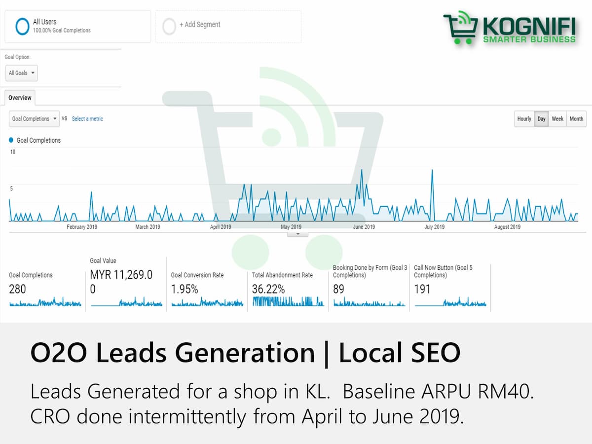 Below is a case study by charts, for a shop in KL. Kognifi made the local SEO website for the shop in end 2017. No paid advertising was done. Traffic and conversions starting in early in 2018. And conversions slowed down by end 2018. Client then requested for CRO which we did between April 2019 to June 2019.